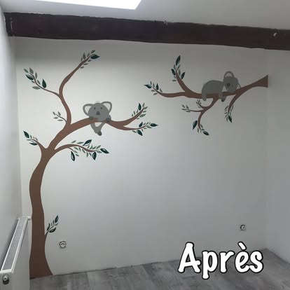 Avec notre prestation de touche artistique, nous vous offrons des dessins muraux et des décorations artisanales qui captivent l’œil et éveillent les sens. Que ce soit pour une chambre d’enfant avec des motifs joyeux comme des koalas, ou pour un salon avec des moulures élégantes, nous nous engageons à dépasser vos attentes avec notre savoir-faire artistique.